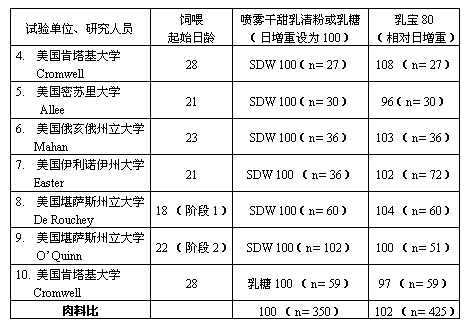 比較乳寶80與噴霧干甜乳清粉、結(jié)晶乳糖對仔豬肉料比的影響。