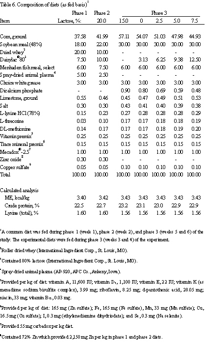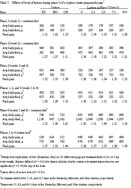 to lactose during phase 3 was maintained after pigs